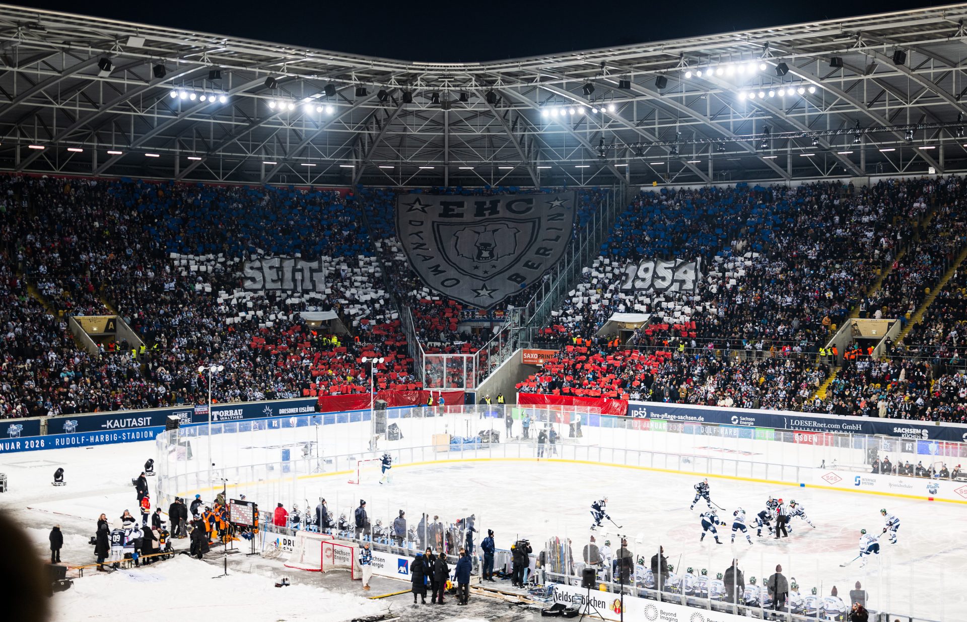 In einer fulminanten, winterlichen Atmosphäre im Dresdner Rudolf-Harbig-Stadion gewannen die Eisbären das 7. DEL-WinterGame mit 3:2 nach Verlängerung. Dabei sah es noch drei Minuten vor Spielende nach einem Sieg für die gastgebenden Dresdner Eislöwen aus. Wie es dennoch zum Erfolg für unsere Eisbären kam – und wie das Gesamterlebnis vor Ort einzuordnen ist – gilt es nun in gewohnter Form zu analysieren.